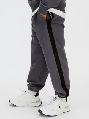 • pantalon de jogging : taille à cordon de serrage, bas de jambes élastiques, penches fendues sur les côtés, galon avec logo contrastant sur les côtés