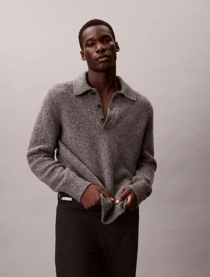 Pull polo relaxed en laine mélangée