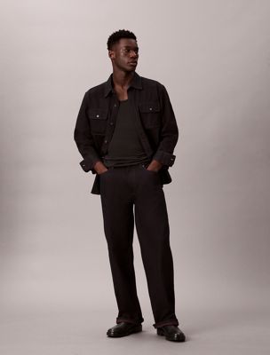 Un tocco moderno su uno dei modelli preferiti degli anni '90; baggy jeans Calvin Klein che si poggiano in vita, cadono morbidi sui fianchi, con gambe ampie e dritte. Realizzato in denim non elasticizzato più pesante, di colore blu scuro con un sottile sottotono rosso merlot.