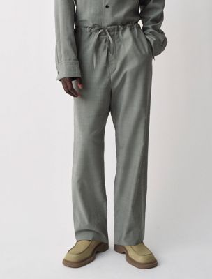 Pantaloni stile pigiama con coulisse in vita e zip centrale nascosta sul davanti. Realizzati in 100% lana leggera fil-à-fil effetto mélange.