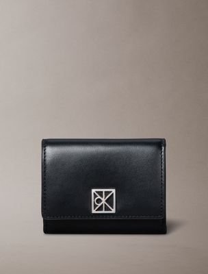 Portafoglio a tre ante in pelle con emblem logo monogramma