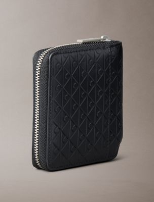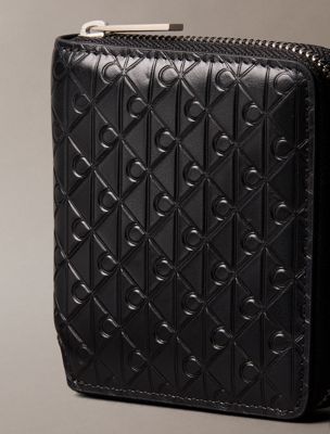 Portafoglio a libro con zip e monogramma stampato all-over