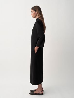 Mittellanges, langärmeliges Tunikakleid mit Rundhalsausschnitt. Aus einer weichen Woll-Seidenmischung gefertigt.