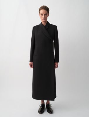 Maßgenauer, knöchellanger Zweireiher-Mantel Silhouette und seitlicher Knopfverschluss. Hergestellt aus einer doppelseitigen Woll-Seiden-Mischung.