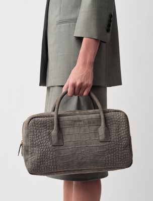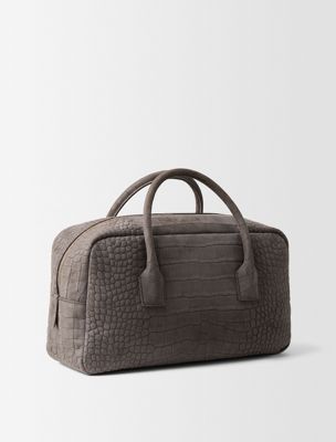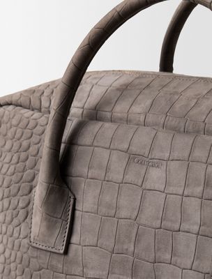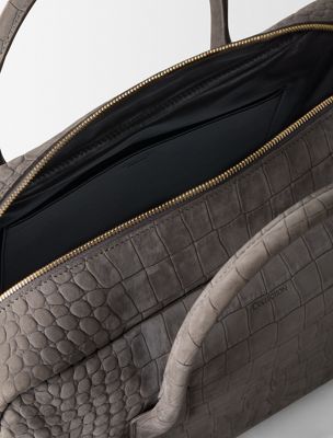 Diese Duffel Bag aus Nubukleder mit Krokodilmuster ist von einem archivierten Calvin Klein-Design inspiriert und vereint Pragmatismus und Originalität.