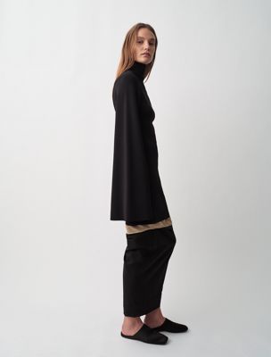 Ein Pullover mit weiten Ärmeln und einem hohen Rollkragen. Aus glatter Viskose gefertigt.