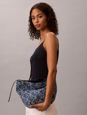 Denim-Bucket-Bag mit durchgehendem Emblem-Logo