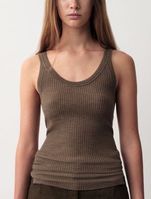 Fein geripptes Tank-Top aus 100 % Merino, 18-Gauge. Dezent durchsichtig mit taillierter Silhouette.