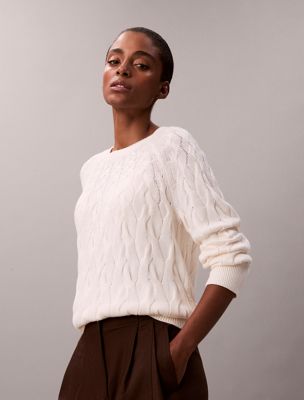 Lässiger Zopfstrick-Sweater aus Baumwolle