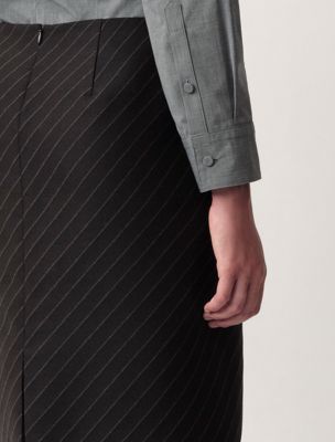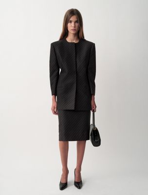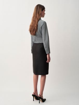 Röhrenförmiger, knielanger Bleistiftrock mit niedriger Taille und diagonalem Streifenjacquard auf 100 % kompakter Wolle.