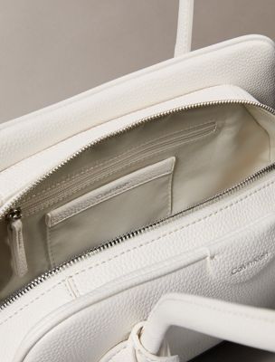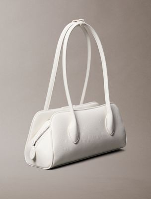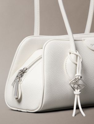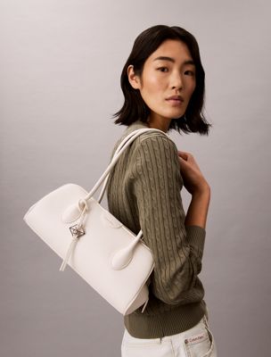 Schultertasche aus genarbtem Leder mit Emblem-Logo